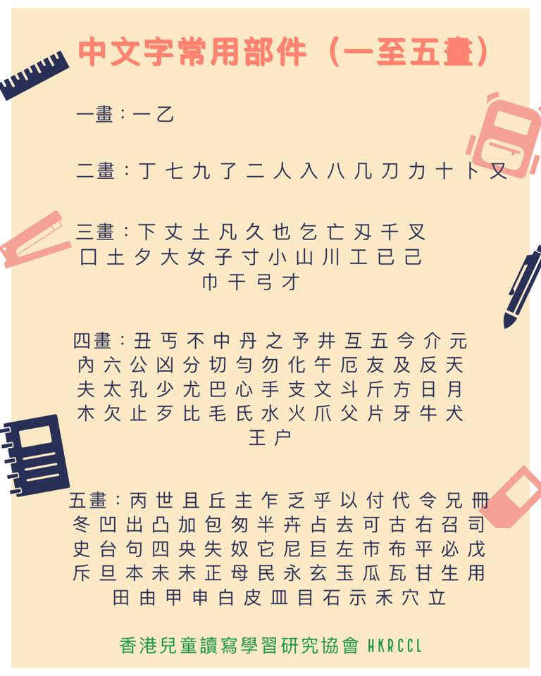 孩子識字超過1500,基本可以閱讀書籍裡9成的字,而這1500個字,大約有三四百個部件組成。 如下是常用的一些部件: